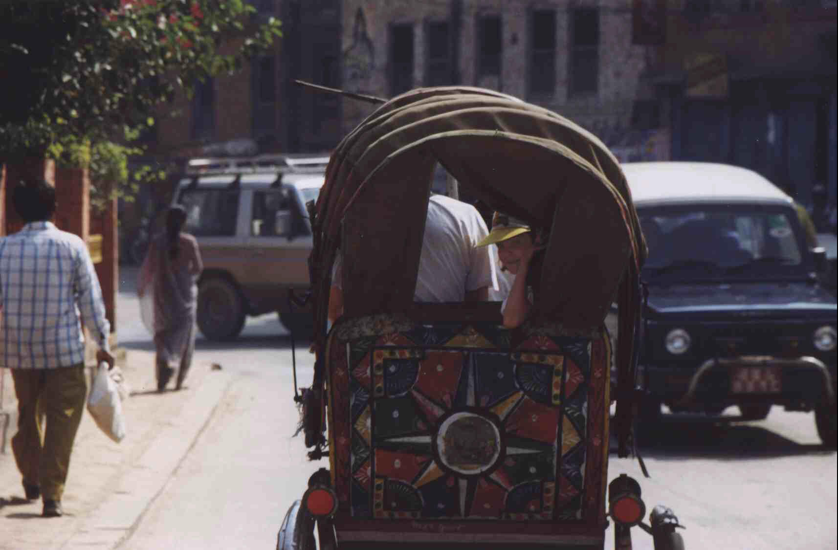 Met ingang van januari 1998 heeft de Nepalese regering de permits voor een groot aantal populaire treks afgeschaft. De prijs van het visum om het land in te komen is toen verhoogd, naar fl 95,- voor een basisvisum. Hoewel we dus geen officiële trekkingpermit meer nodig hebben (en dus geen pasfoto, dacht ik) moeten we ons toch bij een ‘administration office’ melden en laten registreren voor een ‘entrance permit’. Tijdens die administratieve handelingen, met paspoort kopieën en veel stempels ligt Yme als een uitgeteld vogeltje op de bank. Voor we uiteindelijk in twee oude Toyota’s vertrekken, poept hij zijn broek én de w.c. onder. De laatste kon al niet meer viezer.