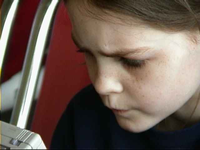 Eva speelt met gameboy