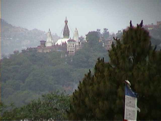 Swayambhunath vanaf het balkon van hotel