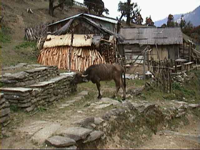 Kali Gandaki, dorpje vanuit rivierbedding, voor Tukuche