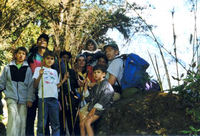 Groepsfoto met bamboestokken